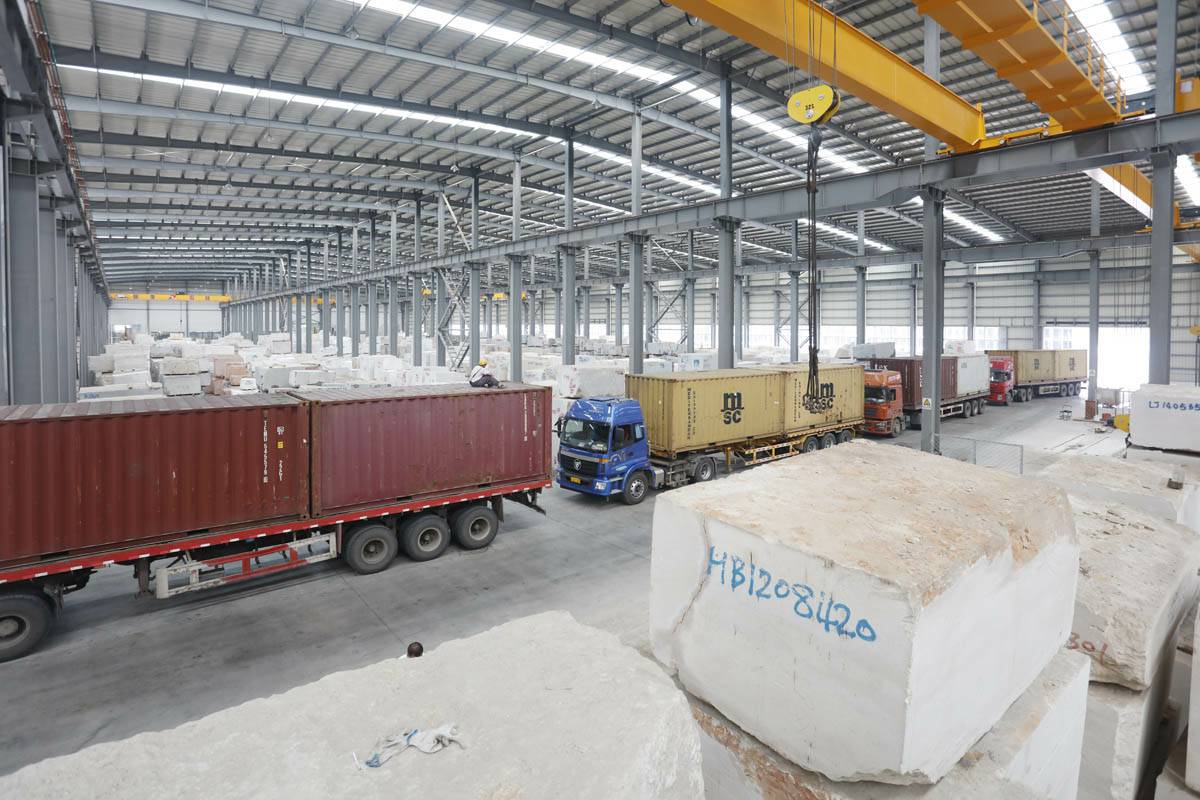 北京振华智能物流解决方案有限公司采用世界先进的环保理念打造超大型室内荒料场。该荒料场实际面积为25000平米,可存放高达15万立方米石材荒料,储备天然大理石荒料资源百余种,时刻满足您的大量需求.